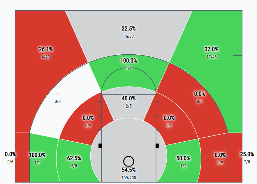 The aspect that draws the attention of scouts is the Dutch big man’s great court vision. His 3.1 apg this season are numbers typical of an added playmaker and of a very unselfish player. He can operate as a “hub” for his teammates both from the low post (0.992 ppp) and the high post (1.042 pps). He has a high basketball IQ that allows him to connect with the other big, read excellent cuts, or kick out to shooters on the arc.